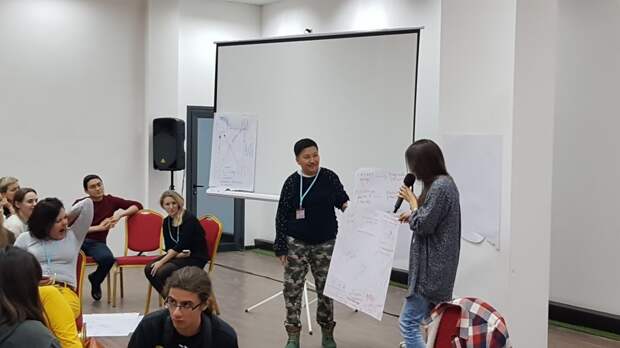 Теперь задание: придумать решение этой проблемы с помощью того, что тебе нравится. В течение 15 минут команды сибиряка Жени и Бориса из Душанбе придумывают, как свергнуть власть, «лёжа на деревьях». Звучит комично, однако, объясняя свою идею, ребята не стесняются уточнять, что готовы активно использовать в борьбе вбросы и манипуляцию.
