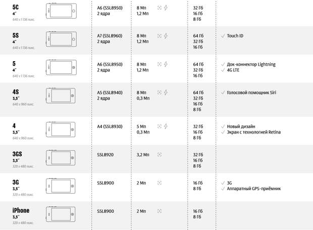 Инфографика: Как менялся гаджет с момента появления на рынке первого айфона